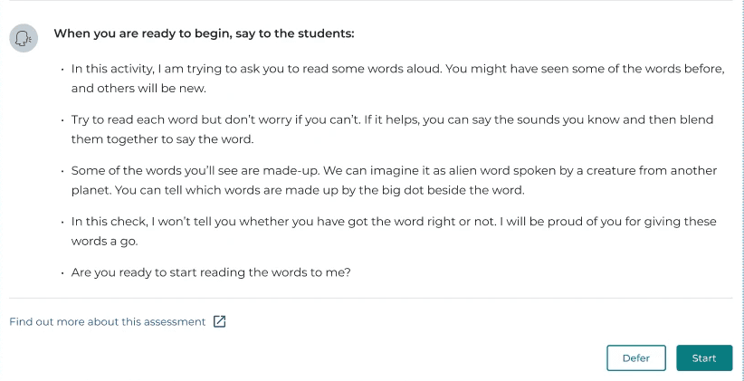 Alien imagery confused younger students, but we still needed to indicate non-real words for decoding skills assessment. I replaced aliens with simple colored dots using the branding color - same function, no distraction.